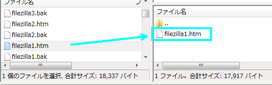 ファイルをアップロードするには、左から転送したいファイルを選択し、右にドラッグ&ドロップします。