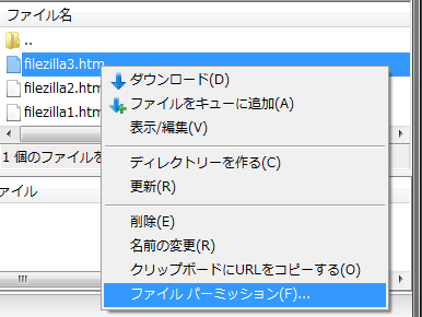 必要に応じてパーミッションの変更をしたいときは、右クリックメニューから、ファイルパーミッションを選択します。