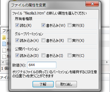 ファイルの属性が表示されるので、この画面で変更します。