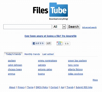 海外のサイトでFileserve、Filesonic、Hotfile 、Megauploadなど60種類ぐらいの海外アップローダからまとめて検索できる。使い方は、FileTramと同じ。