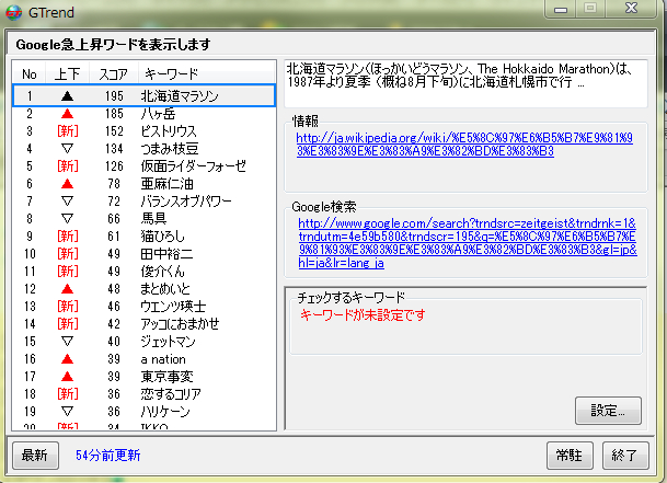 Google急上昇ワードを監視チェックして、指定したキーワードを発見して通知