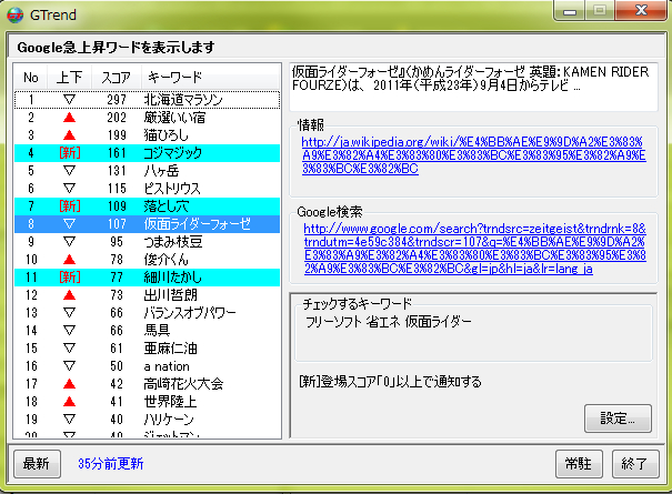 GTrend とは、Googleの“急上昇ワード”を常にチェックしたい人に便利なソフトです。