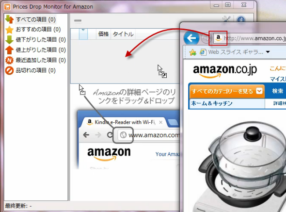 Prices Drop Monitor for Amazon とは、Amazonにある商品の値段をチェックして、安くなったらメールで報告してくれるソフトです。