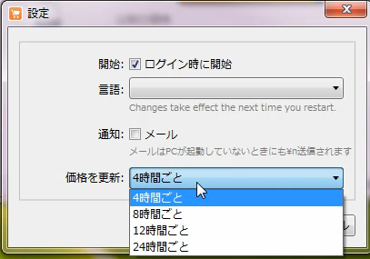 価格をチェックする間隔を4時間から24時間の範囲で選びます。