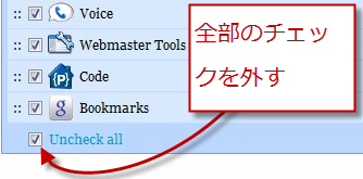 一番下のUncheck allをクリックで、全部のチェックを外すことができます。