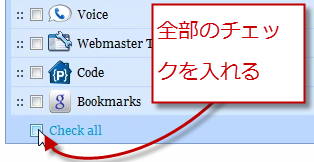 全部のチェックを外した後は、全部のチェックを入れることができるようになります。