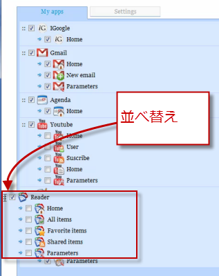 ドラッグで、使う頻度に応じて並べ替えたりすることができます。