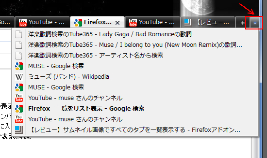 使い方は、タブの右端にある▼をクリックするだけです。