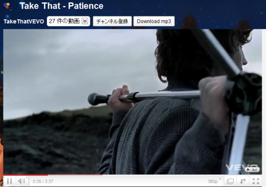 動画のページを開くと、上に Download mp3というボタンが表示されています。