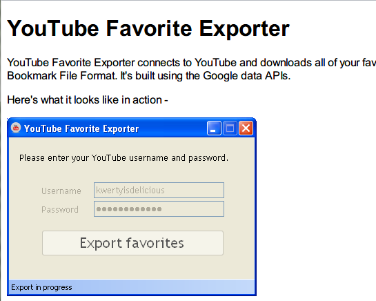 YouTube Favorite Exporter とは、YouTube のお気に入りを、HTML ファイルに書き出すソフトです。