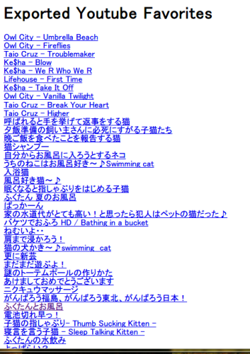 YouTube のお気に入りを、HTML ファイルに書き出す