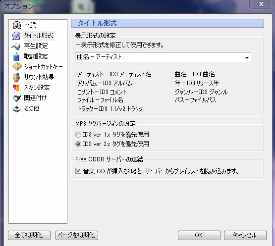 プレイヤーに表示される、曲名の表示形式を設定することができます。