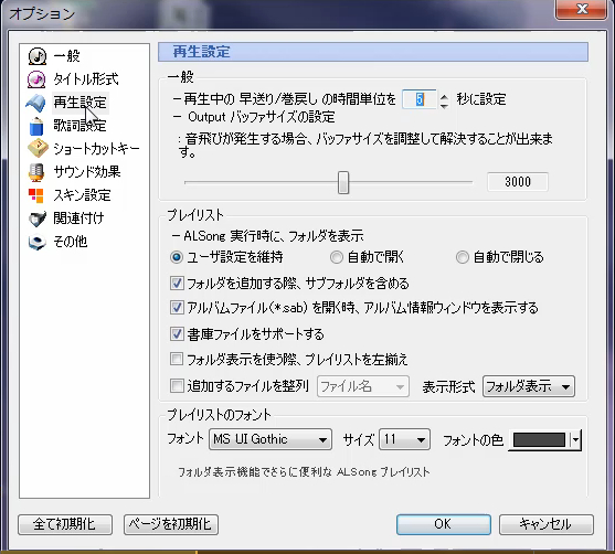 一般:再生中の 早送り・巻戻し の移動時間単位を指定できます。(1~100秒)