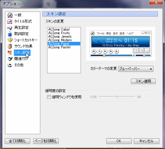 デスクトップに表示される歌詞は、他のウィンドウの邪魔にならないよう、歌詞ウィンドウのサイズと透明度、カラー、フォントなどを設定できます。