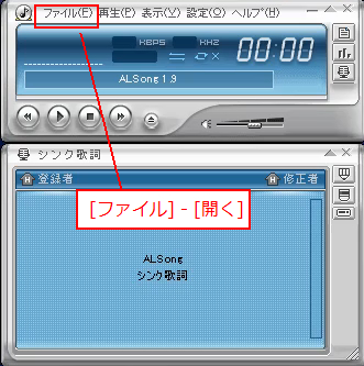 他にも、ALSong メインウィンドウ上で右クリックして、表示されるメニューの[開く]を利用することもできます。