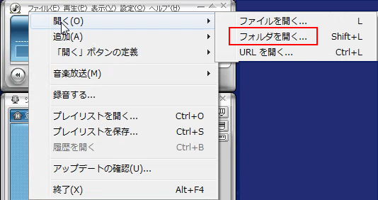 フォルダを開く : 再生したいファイルをフォルダ単位で表示します。
