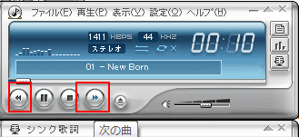 [メニューバー] の [再生] - [巻戻し/早送り] から選択