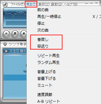 マウスの右クリックメニューの [再生] - [巻戻し/早送り] からも選択