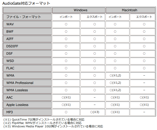 コルグAudioGate とは、windowsの場合以下の2つのファイルが入力のみですが、他は入力出力ともにOKです。