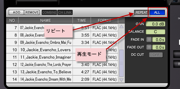 再生モーボタンをクリックするたびに、再生モードが変わります。