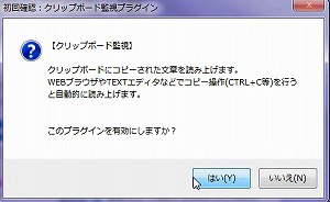 クリップボードの読み上げを利用したい人は、「はい」