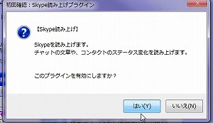 Skypeの読み上げを利用したい人は、「はい」