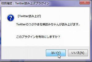 Twitterの読み上げを利用したい人は、「はい」