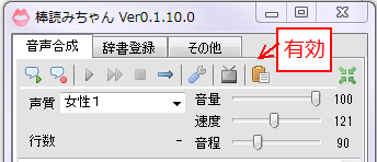 ※音声合成タブのアイコンで監視の有効/無効を切り替えできます。