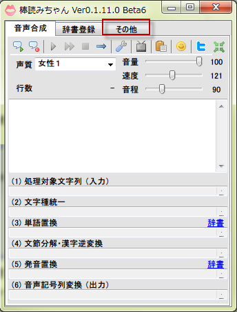 棒読みちゃんを起動して、その他タブをクリックします。