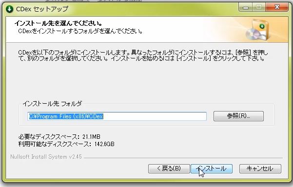 特に理由がない限り、デフォルトのフォルダのままでOKです。Windows7 64bitなら、インストール先はProgram Files (x86)。