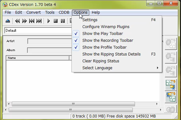 CDex とは、CDから音声ファイルをリッピングして、エンコードもしてくれるソフトです。
