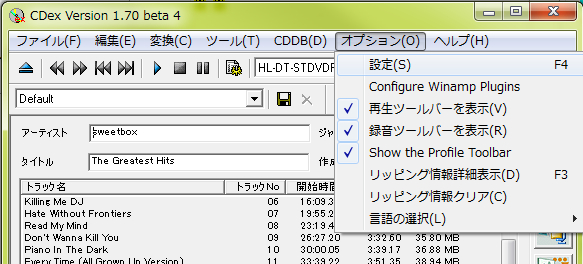 音楽CDから音声ファイルを抜き出すCDリッピングツール