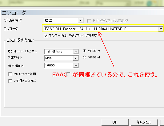 CDexを使って、AAC(MP4)ファイルを作成する方法です。