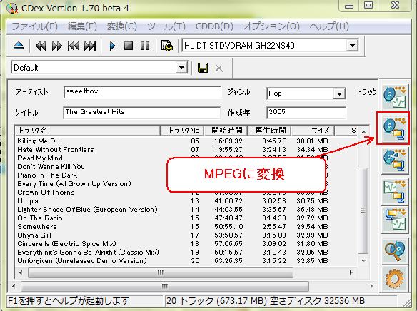 MPEGに変換ボタンをクリックして、リッピング&AACファイルへのエンコード開始です。