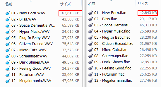 元のWAVと並べると、サイズの差がわかると思います。