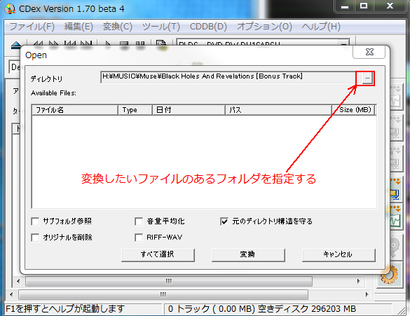 ブラウズボタンを押して変換したいファイルのあるフォルダを選択してください。