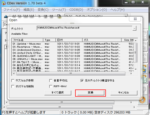 例では、ファイルを全部選択しています。変換ボタンを押します。