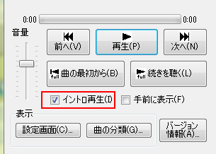 イントロ再生中は、次の曲・前の曲への移動ができます。