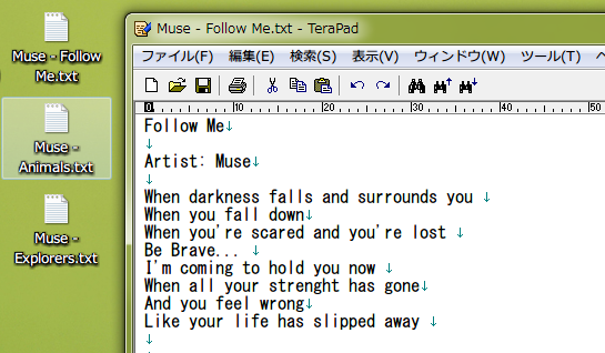 保存された歌詞を確認したい時は、ダブルクリックすると、メモ帳などのテキストエディタで開きます。
