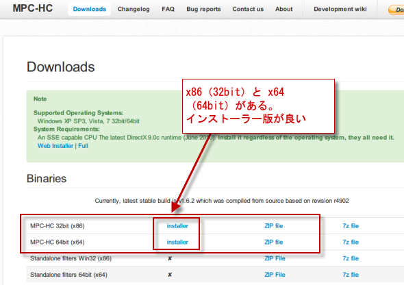 【ダウンロード】http://mpc-hc.sourceforge.net/downloads/