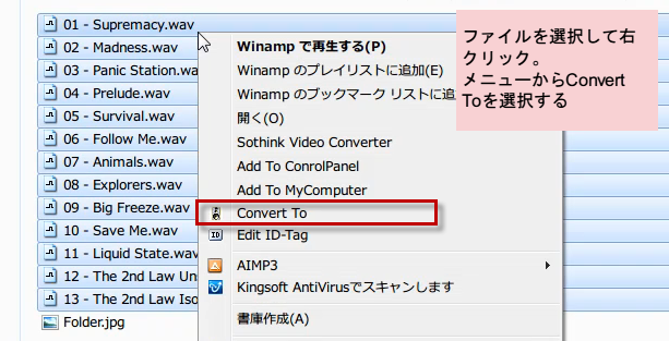 変換したいファイルを選択して、右クリック。