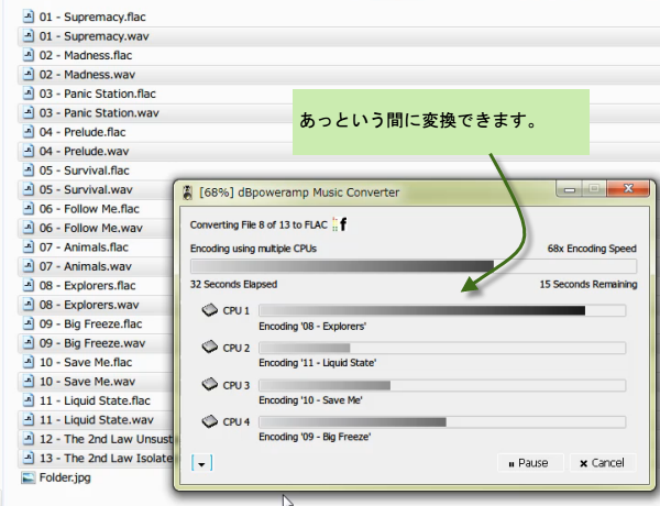 すでにCDからWAVファイルとしてリッピングしてPCに保存している音声ファイルをロスレス圧縮のFLACファイルに変換します。