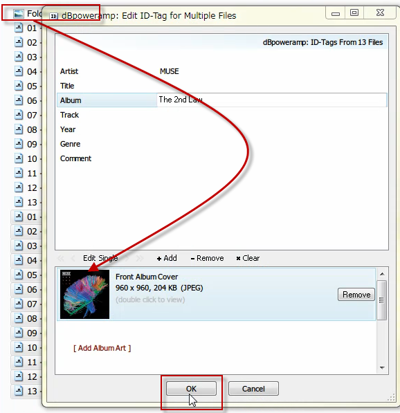 Album Artは、すでにWebからダウンロードしてフォルダに入れてあります。
