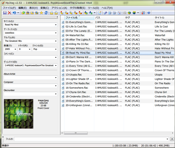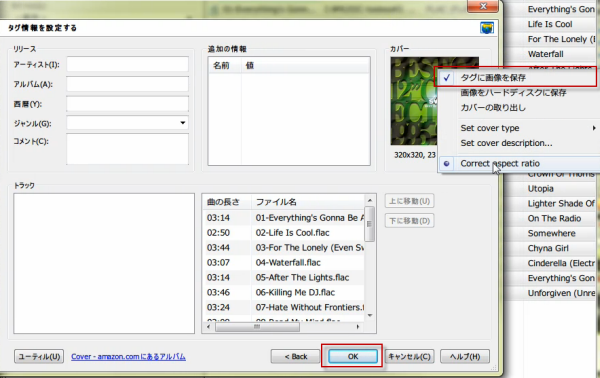 完了です。Flacファイルにカバーアートが書き込まれました。