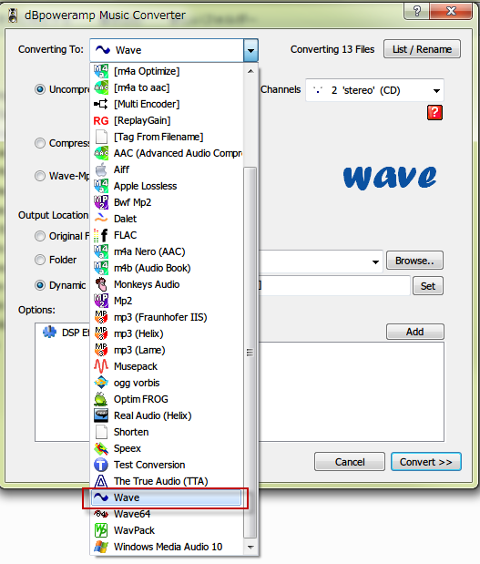 Converting to でWaveを選びます。