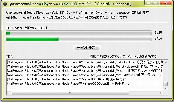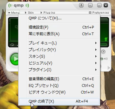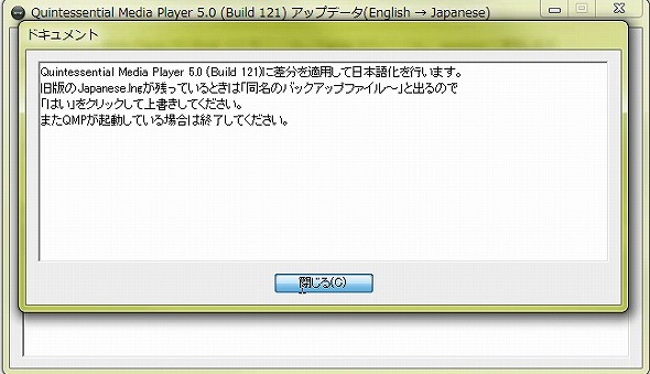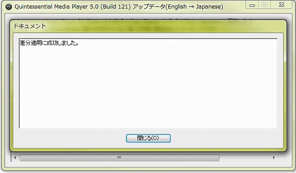 日本語化バッチの適用が完了しましたので、画面を閉じて、Quintessential Playerを起動します。