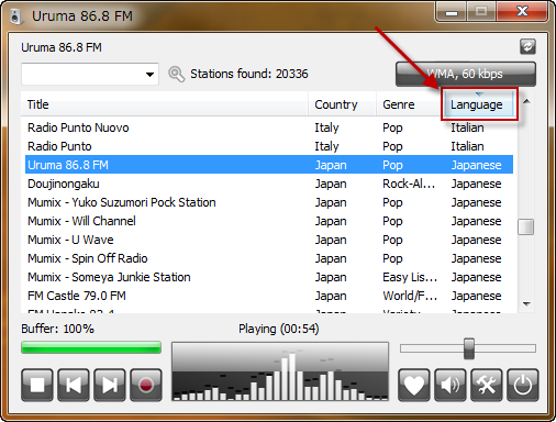 ランゲージで並び替えて、Japaneseを探してみると、これもまた大量の日本語の放送局が表示されました。