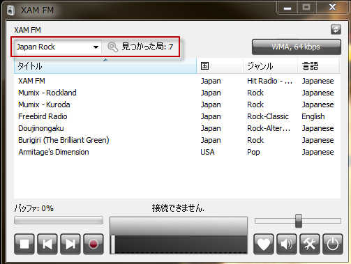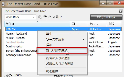 検索欄に、Japan Rockとキーワードを2つ入力すると、一気に7局まで絞り込めました。