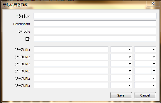 登録したい放送局のタイトル、詳細、ジャンル、国、ソースURLを入力します。