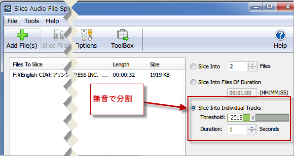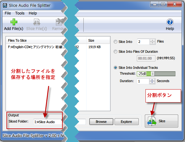 Slice Audio File Splitter 分割のしかた